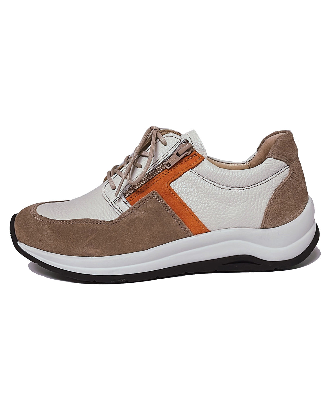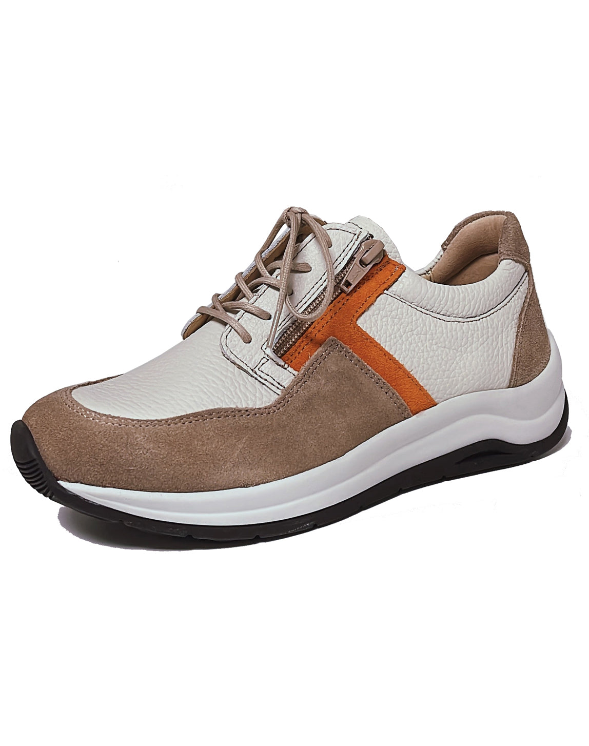 The Comrie from Wolky is a stylish sneaker crafted in premium quality leather and designed in a multi colour combination. The padded collar provides added comfort, and the leather lining effectively absorbs and wicks away moisture. The sole has extra cushioning and support, providing outstanding shock absorption with every step. A dual zip/lace closure provides an easy on/off fit and the removable footbed is ideal for orthotic inserts. Step out in style this summer for a fresh summer look in the Comrie Lace/Zip shoe and enjoy outstanding comfort and support.
