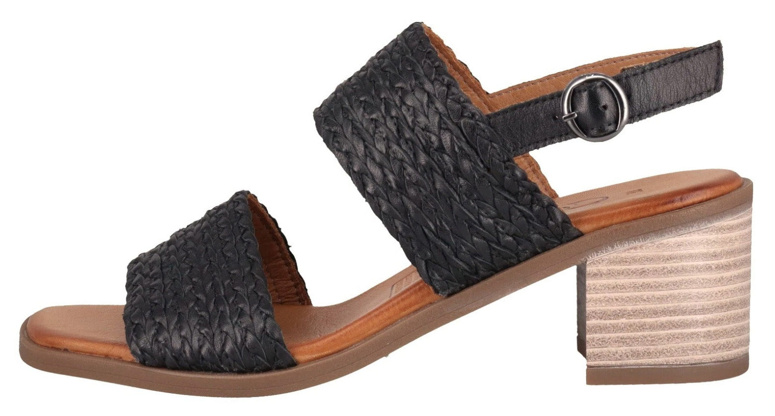 Introducing the Cabello Izzy Block Heel Sandal - Black, a stylish new favourite in the Cabello collection. Crafted from premium leather with elegant plaited straps, Izzy delivers a modern square toe design and a luxuriously cushioned footbed for superior all-day comfort. The adjustable strap ensures a secure, personalised fit, while the 55mm block heel offers stability and effortless style. Perfect for special occasions, evenings out, or elevated everyday wear, Izzy combines fashion, comfort and European craftsmanship in one stunning sandal.